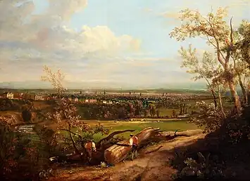 Ralston then studied under Joseph Parry, or "Old Parry" as he was known to his contemporaries—a Liverpool-born painter who was given the title of "The Father of Art in Manchester" after relocating to the city in 1790 and earning acclaim for his depictions of urban life.[14][15][16] Ralston also studied under John Rathbone, an oils and watercolours landscape painter known in his day as "the Manchester Wilson".[17][9][18] Rathbone died in 1807, implying that Ralston was no older than 18 when he moved to Manchester.[17]