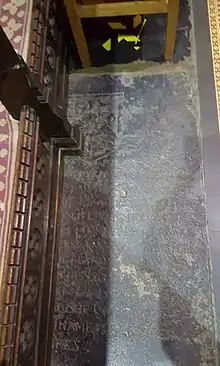 Here he lived quietly until the winter of 1643, when he died on December 11, and was buried on the 19th, a fee of 2 shillings and 6 pennies being paid to the churchwardens "for the burial." His monument, a large black stone in the floor to the right of the altar, may still be seen in All Saints Church in Fulham, though it is barely legible and partially hidden by the choir-stalls. It bears the arms of himself and his wife and reads: