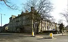 Smith was involved in public duty and philanthropy in both Aberdeen and Leeds. In 1851 he was elected treasurer of Leeds Chamber of Commerce.[23] In 1858, the same institution elected Smith to attend the select committee of the House of Commons to "give evidence in favour of the abolition of the clause which limits the Bank Directors in the issue of Bank of England notes to an amount of £14,475,000, except against gold, and that the Bank Directors be invested with a discretionary power to issue one pound notes of the Bank of England [whenever necessary]".[24] In 1856, Smith was a member of the Leeds Honorary Board for the Scottish Widows Fund and Life Assurance Society.[25] By 1861, he had become a magistrate for the West Riding of Yorkshire.[17] Smith was on the building committee which aimed to erect a new hospital - The Ilkley Hospital and Convalescent Home - at Ilkley.[26][27]