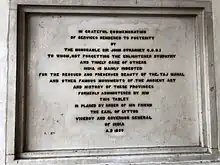 In grateful commemoration of services rendered to posterity by the Honorable Sir John Strachey G.C.S.I. to whom, not forgetting the enlightened sympathy and timely care of others India is mainly indebted for the rescued and preserved beauty of the Taj Mahal and other famous monuments of the ancient art and history of provinces formerly administered by him This tablet is placed by order of his friend the Earl of Lytton Viceroy and Governor General of India A.D. 1880