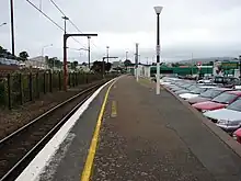 Behind the station building are the bus interchange and mall car park. There is "park and ride" commuter parking by the south end of the platform separate from the Mall car park, and further parking in Moorefield Road across the line and north of the traffic lights.