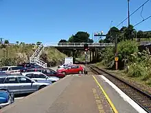 The rail overbridge immediately south of the station was being upgraded in late 2014–15 to include cycle lanes and extra road lanes. Provision is made for dual tracks underneath (currently one track) into the station, as requested by the Greater Wellington Regional Council.[4] With the temporary loss of some park and ride commuter car parks by the south end of the station and in Burma Road, additional car parks were provided at Raroa railway station.[5]