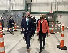 New Bedford is the top-grossing commercial fishing port in the United States,[29] and Mitchell, the grandson of a commercial fisherman lost at sea in the 1950s,[30] has advocated for changes to the federal Magnuson–Stevens Act[31] and ensuring that the interests of fishing are protected when federal officials consider wind leasing areas[32] on behalf of the fishing industry. He has also worked with his economic development team to ensure that New Bedford's proximity to the Massachusetts offshore wind leasing areas south of Martha's Vineyard make it a center of the East Coast offshore wind industry,[33] and the city is the staging port for Vineyard Wind, the first commercial scale offshore wind project in the United States.[34][35] New Bedford is also the site of the New Bedford Marine Commerce Terminalfor the wind industry, and a second terminal is planned for the port, which Mitchell and developers announced after reaching an agreement for a former power plant site now owned by Eversource Energy.[36][37] Mitchell has advocated for investment in waterfront property to prepare for the wind industry as has successfully occurred with offshore wind development in Europe.[38][39] He has traveled to Europe including as part of a delegation to Bremerhaven and Cuxhaven[40] as well as to encourage investment in New Bedford.[41] The New Bedford Port Authority, which Mitchell chairs, has also worked with the state's federal delegation to secure multi-million dollar grants to improve the infrastructure of the port in order to enable economic growth.[42][43]