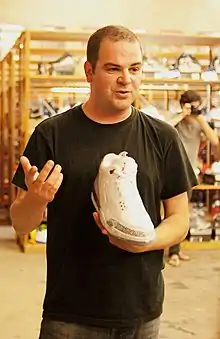 Geller sent invitations to Nike executives to tour his museum. On March 21, 2011, seven top Nike executives, including then-CEO Mark Parker and designer Tinker Hatfield, accepted Geller's invitation and visited the ShoeZeum.[5][18] Subsequently, Nike paid the ShoeZeum's rent for three months while other executives toured the facility. In total, 67 Nike executives visited the warehouse, according to Geller.[19] Others who have seen the ShoeZeum include businesswoman Meg Whitman and baseball player Mike Adams.[8][20] Before the ShoeZeum was open to the public, Geller auctioned off five "golden tickets" for a private tour of his warehouse, with all the proceeds benefiting the Livestrong Foundation.[21]