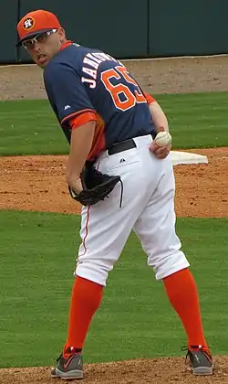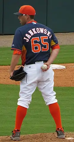 ![]() Jankowski pitching for the Houston Astros in 2015 Spring Training | |
