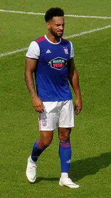 Following his release from Crawley, Roberts moved up two divisions and signed for Championship club Ipswich Town on a two-year contract on 28 June 2018.[32] He debuted for Ipswich in the club's first match of the 2018–19 season, coming on as an 82nd-minute substitute in a 1–0 away defeat to Rotherham United.[33] Roberts found first-team opportunities limited under manager Paul Hurst, playing just 23 minutes in his two appearances before Hurst left the club in October 2018.[34] He played a further 10 times during the first half of that season under new manager Paul Lambert, who played Roberts as a striker.[33][34] Having not played for Ipswich in nearly a month, he joined League Two club Lincoln City on 23 January 2019, on loan until the end of the 2018–19 season.[35] Roberts played a peripheral role during his time at Lincoln, making five substitute appearances as they earned promotion to League One after winning the League Two title.[33][36]