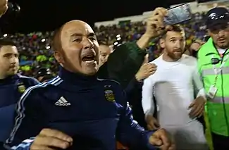 At the World Cup, Argentina had drawn 1–1 with Iceland during their opening World Cup group match, an underwhelming performance that drew criticism from former Argentine captain and coach Diego Maradona.[41] In the next group match, Argentina suffered a heavy 0–3 loss by Croatia due to "a defence left exposed, a midfield that was overrun and an attack that was blunted", which put them on the brink of elimination and led to unconfirmed reports that Sampaoli would be sacked.[42] Senior members of the team including Messi and Javier Mascherano confronted Sampaoli and his assistants in the dressing room, while also approaching members of the Argentine FA to discuss their concerns, and there were also various rumors that Messi was involved in team selection which dismissed Sampaoli's leadership, evoking a formation based on the decisions of Argentine players.[43] The match against Croatia was his 13th game in charge, where he had used 13 lineups[44] and a total of 59 players,[45] and despite a myriad of attacking choices the defence was poor.[46][47][48][49]