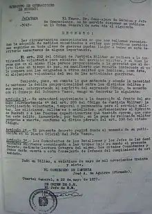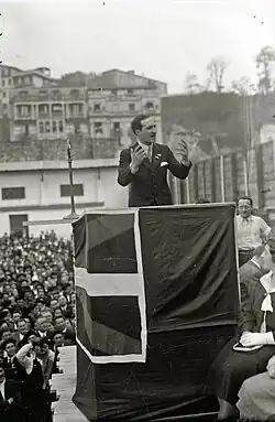 As a result of the dissolution of the legislature for the general election, the hesitation of radical government,[5] and Carlist opposition to the incorporation of Álava in the statutory process,[6] devolution was prevented until 1 October 1936, when the Spanish Civil War started.