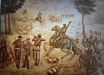 In early 1839, due to ideological differences, Nicaragua and Honduras invaded El Salvador, still part of the Federal Republic of Central America. On 5 April, the invading troops were defeated by General Francisco Morazán, and immediately afterwards, he advanced into Honduras in an attempt to overthrow the government of Juan Francisco de Molina.[4] Molina, seeing that the troops were nearing Comayagua, resigned, and on 13 April 1839 minister Felipe Neri Medina formed a council of ministers and assumed leadership.[5] Medina would very quickly resign due to the immense pressure caused by Morazán's counter invasion, and so did the minister after him, Juan José Alvarado, and so Guerrero would take leadership on 27 April of the same year.[6]