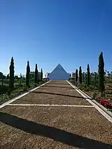 Hinojosa's memory remains politically charged.[165] Some tackle the Hinojosa-Lorca parallelism[166] declaring upfront that both were victims of "irrational hatred" produced by an "absurd war",[167] yet among countless books discussing the civil war terror, almost all mention Lorca and almost none mention Hinojosa.[168] Both right-wing and left-wing groups started to claim his legacy. Some Traditionalist sites honor him as "their man".[169] Certain progressivist authors present him as a martyr who dedicated his life to fighting imperialism, nationalism and the church;[170] others imply his homosexuality.[171] The Málaga San Rafael cemetery, where Hinojosa was executed, was doted in 2014 with a monument-mausoleum to honor "those who gave their life in defense of freedom and democracy and whose remains rest here or in other sites".[172] Hinojosa has never been mentioned in a spate of press notes related,[173] some of which noted a construction recording "la barbarie de la represión franquista".[174]