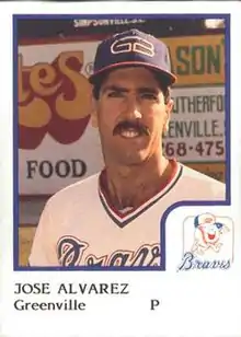 Jose Lino Alvarez (born April 12, 1956) is a retired Major League Baseball pitcher. He played four seasons at the major league level, pitching for the Atlanta Braves. He played for the Braves in 1981 and 1982, then spent five seasons in the minor leagues before returning to the Braves in 1988 and 1989. After a successful season in 1988 and earning the Atlanta Braves Most Outstanding Pitcher Award, Jose began the 1989 season in fine fashion with 2 wins and a save.