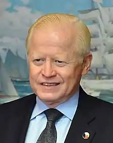 Jose Lampe Cuisia Jr. KGCR (born 16 July 1944) is a Filipino banker, business executive, and diplomat. He was the seventh Governor of the Central Bank of the Philippines, serving from 1990 to 1993,[1] and formerly the Ambassador of the Republic of the Philippines to the United States of America.[2] He is vice-chairman in the Philippine American Life and General Insurance Co., in which he had been CEO for a decade until its American owners, AIG, went bankrupt and had to sell out to Asian investors. He is also vice chairman of SM Prime Holdings. He is also a director of the Ayalas' Manila Water Co., in cement conglomerate Holcim Philippines, in call-center firm Integra Business Processing Solutions, in property firm ICCP Holdings, and in Beacon Property Ventures. Likewise, Cuisia is chairman of The Covenant Car Co.[3]