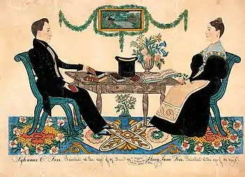He is best known "for his double portraits of married couples facing each other across a table".[15] His work can also be characterized by the painting of multiple members of a single family, either in groups or individually, demonstrating that his reputation spread by word of mouth among the closely tied families of the rural municipalities in which he traveled.[16]