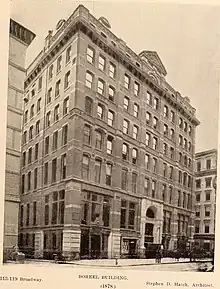 - Boreel Building, 113-119 Broadway (1849–50), no longer extant