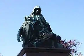 His monument of "Mother and Son" in Woodside Cemetery, Paisley is typical of his skills. It is a modernised version of Michelangelo's "Pieta" in St Peters in Rome, and has huge emotion. Although technically for a single soldier, Lt Daniel Duncan, and his mother who died of grief three months later it is often seen as emblematic of the futility of war in general.[3]