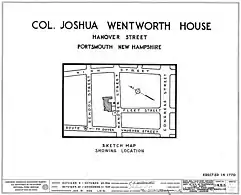 The building, erected in 1770,[3] previously was located at 119 Hanover Street in Portsmouth, New Hampshire.[4][5] Joshua Wentworth (1742–c. 1809),[6] namesake of the house, was a grandson of John Wentworth (1671–1730), who had served as Lieutenant Governor for the Province of New Hampshire.[7] The house has similarities to the Gov. John Wentworth House and the Wentworth-Gardner House, both of which are also located in Portsmouth.[8]