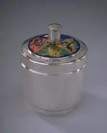 Himsworth was fiercely individualistic, she never married and spent her entire adult life in her Sheffield home with its purpose built silversmithing studio. She was a strict vegetarian and a member of the Vegetarian Society.[17] She was an advocate for women's rights, particularly in respect to the Goldsmiths’ Company, an institution where women were virtually excluded. Her campaigning during the 1940s paved the way to full recognition for female silversmiths and goldsmiths in 1983.[18][19][20]