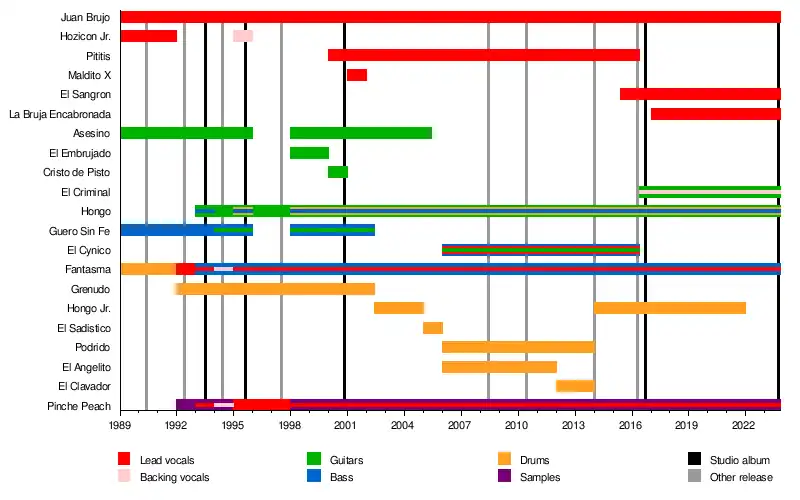 - Juan Brujo (Juan Lepe) – lead vocals (1989–present)