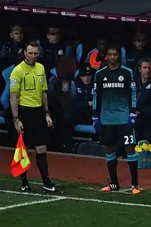 On 3 May, Cuadrado made his only third start since his move to Chelsea, in the London derby match against Crystal Palace, as Ramires was taken ill before the game. At half-time, however, Cuadrado was substituted for Mikel John Obi; Chelsea ended up claiming their fifth league title with a 1–0 victory.[28] Three weeks later, in the final match of the season against Sunderland, he won a penalty when fouled by John O'Shea, on which Diego Costa evened the score in an eventual 3–1 home win, but he was later substituted when he was injured in the final minute of the first half.[29]