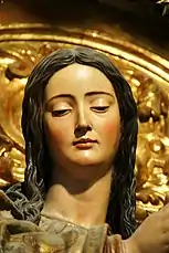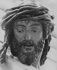 Other works were the great altars at Santa Clara in Seville and at San Miguel in Jerez, the Immaculate Conception and the realistic figure of Christ Crucified in Cristo de la Clemencìa, commissioned in 1603,[1] in the sacristy of Seville cathedral (illustration); the figure of St John the Baptist, and the St Bruno (1620); a tomb for Don Pérez de Guzmán and his wife (1619); the highly realistic polychromed wood head and hands of St Ignatius of Loyola (1610) and of St Francis Xavier in the university church of Seville, where the costumed figures were used in celebrations.