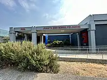 Juanita High School is a high school in Kirkland, Washington, administered by Lake Washington School District. It was opened on September 4, 1971, as a result of a campaign driven by an education theory known as the "Juanita Concept", developed by John Strauss, who became the school's first principal. It was later discovered that this concept did not work, primarily because of the passing of the "Basic Education Law" in the mid-1970s,[1] resulting in the school later remodeling into a traditional format. The mascot chosen was the "rebel", to represent the rebellious nature of the teaching concept.[2][3] From 2020 to 2022, the National Parent Teacher Association designated Juanita High School as a school of excellence.[4]