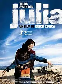 Julia is a 2008 international co-produced crime drama film, directed by Erick Zonca and starring Tilda Swinton. It was shot in California and Mexico. The film was inspired by the John Cassavetes film Gloria.[3] For her performance, Tilda Swinton earned a nomination for César Award for Best Actress.