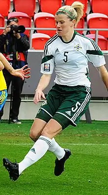 Julie Elizabeth Nelson BEM (born 4 June 1985) is an association football defender from Northern Ireland who plays for Crusaders Strikers.[1] She represents Northern Ireland nationally as the record cap player.