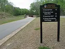 The Arkansas River Trail is a rail trail that runs 17 miles (27 km) in along both sides of the Arkansas River in Central Arkansas.