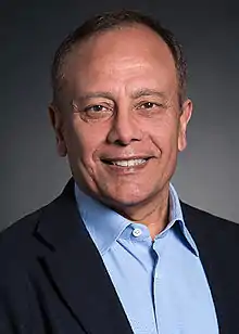 The company was founded in 1996 by Pradeep Sindhu, with Scott Kriens as the first CEO, who remained until September 2008. Kriens has been credited with much of Juniper's early market success.[2] It received several rounds of funding from venture capitalists and telecommunications companies before going public in 1999. Juniper grew to $673 million in annual revenues by 2000. By 2001 it had a 37% share of the core routers market, challenging Cisco's once-dominant market-share.[3][4] It grew to $4 billion in revenues by 2004 and $4.63 billion in 2014. Juniper appointed Kevin Johnson as CEO in 2008, Shaygan Kheradpir in 2013 and Rami Rahim in 2014.