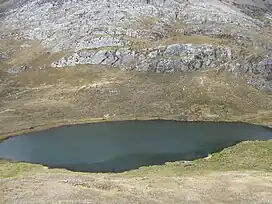 ![]() Yanaqucha ("black lake") at the foot of Jupa Tawqaña | |