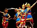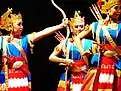 The clothing worn in the dance is a warrior princess with her hair in a small bun and wearing a golden crown. His main shirt is blue with short sleeves with gold trim and belt, while his pants are knee-length. For weapons use jemparing (archery), endhong, nyenyep, gendewa, and cundrik. The dancers' make-up aims to help shape the character and soul of a soldier.