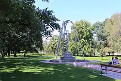 In 1996, in the middle of the park, a monument was erected in memory of the people deported to Bărăgan between 1951–1956.[2] Work of the architect Sorin Gavra, the monument was erected by the Association of Former Deportees in Bărăgan, at the time of the commemoration of 45 years since the deportations.