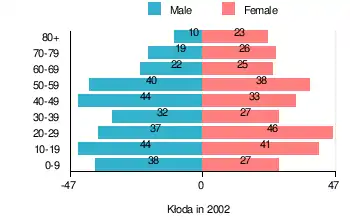 Figure 1. Population pyramid of village in 2002 — by age group and sex[1]