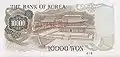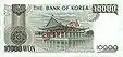 ₩10,000 | 171 × 81 mm | Green | Sejong the Great, Water clock | Gyeonghoeru Pavilion at Gyeongbok Palace, Rose of Sharon | June 15, 1979 | May 12, 1993 | Series II (나) | In Japan[18] | |