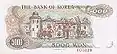 - Security thread in the right side of the obverse side of the note with small lettering "한국은행 Bank of Korea" and its corresponding denomination
