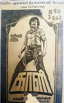 Kaali is a 1980 Indian action film written by Mahendran and directed by I. V. Sasi. Produced by Hem-Nag, the film stars Rajinikanth, Seema, Fatafat Jayalaxmi and Shubha.[1][2] The film was simultaneously made in Tamil and Telugu languages, with Chiranjeevi replacing Vijayakumar in Telugu.[3] The cinematography was handled by Ashok Kumar and soundtrack was composed by Ilaiyaraaja.[4] Kaali ran for less than 50 days in Chennai and was considered a box office failure in both Tamil and Telugu.[5]