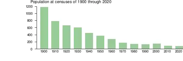 2% of residents were under the age of 18, 1% from 18 to 24, 18% from 25 to 44, 46% from 45 to 64, and 32% who were 65 years of age or older. The median age was 59 years. For every 100 females, there were 98.6 males. The population has declined since 1900:[24]