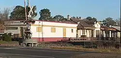 The Kansas City Southern Depot is a former railway station in Leesville, Louisiana. It was built by the Kansas City Southern Railway in 1916.[2] It served as a combination of passenger station, freight station, and crew change point.[3] The station was a busy shipping point during the Vernon Parish lumber boom in the early part of the 1900s. A local KCS train served the station into the 1960s.[4]