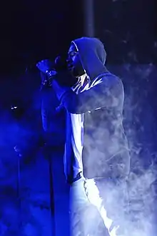 The Life of Pablo was released in February 2016, and made history by becoming the first album to top the Billboard 200 predominantly from streaming, while also having the second-highest total of first-week streams for an album.[12] In June 2018, West released both his eighth studio album Ye,[13] and his second collaborative album Kids See Ghosts (with Kid Cudi).[14] West released his ninth studio album Jesus Is King in October 2019. The album became West's first to top the Top Christian Albums, and Top Gospel Albums charts.[15][16] His tenth solo studio album, Donda (2021) recorded the second-biggest first week performance in Spotify's history,[17] in addition to equalling the record for most No. 1 debuts in a row on the Billboard 200, with Eminem (10).[18] Donda 2 was released in February 2022 via the Stem Player.