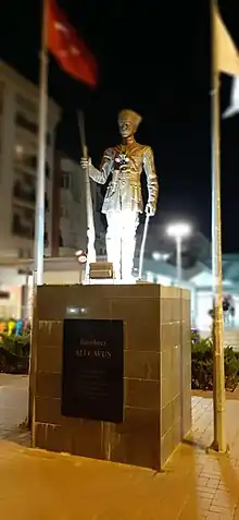 Monument of Grenadier-Sergeant Ali in Alaybey Station, a Cretan-Turk within the vanguard of the 14th Cavalry Division which liberated Karşıyaka on 9 September 1922.[7][8]