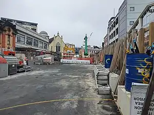 ![]() Construction site at Beresford Square, the future location of the northern entrance to the station | |