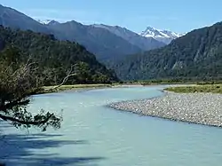 The Karangarua River is located in the west of New Zealand's South Island. It flows northwest from the Southern Alps, entering the Tasman Sea 80 kilometres northeast of Haast. The main tributary of the Karangarua is the Copland River.