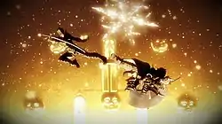 The Japanese animation industry traditionally drew every film cel by hand.[30] This is labor-intensive and inefficient; the cels are generally non-reusable, and errors are difficult to correct. This method is called the 2D approach due to the conception of the source images in only two dimensions. The use of computers and graphics software introduced computer graphics (CG) into the industry. This reduced waste; animators can reuse digital cels to correct errors and make changes. Increasing computer power spread the use of three-dimensional graphics software to create 3D models and environments, and render them as 2D images. This 3D approach requires more resources to create the 3D models, but production teams can correct errors or remake film sequences much faster than the traditional 2D approach. The 2D-3D hybrid approach in Karas was due to budget and aesthetic concerns. The 2D approach allowed greater artistic details and creativity, and the 3D approach could save resources.[30] Sato, however, disapproved the common notion of using the 3D approach for economic concern. He pushed the team to enhance image quality with detailed CG. He was also dissatisfied with computer lighting effects, and ordered the animators to draw them by hand.[32] Due to the bright colors of the original cels, they darkened the images and concentrated on areas where shadows should be, leaving untouched the areas where light falls on.[33]