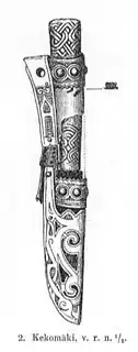Drawing of a Karelian Iron Age knife with a sheath made by Theodor Schvindt in 1893 illustrating the one he excavated in Käkisalmi, Karelia
