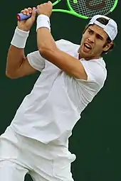 He continued with good performances, reaching the semifinal of the Halle Open. There he achieved his first win on grass over Gilles Simon,[10] and then recorded his second career top 10 win, after defeating Kei Nishikori. He lost to Roger Federer and failed to reach the final. This result ensured him a first Grand Slam seed place at the following Grand Slam at Wimbledon. There, he also had another great result, reaching his first third round, after wins over Andrey Kuznetsov and Thiago Monteiro. He then lost to Rafael Nadal.[11] His successful journey then continued with two consecutive quarterfinals at the Båstad Open and the Hamburg Open. However, he then started to struggle with form. He was eliminated in the first round at both the Canadian Open and the US Open, but reached the third round of the Cincinnati Open. In September he played in the Davis Cup for the second time in a year. He played against Hungarian players, winning against Attila Balázs and losing to Márton Fucsovics. He then went to China, reaching the second round of the Chengdu Open and the China Open and losing in the first round of the Shanghai Masters. He then returned to Europe, but still with no success, with only first rounds of the Vienna Open and the Paris Mastes. He finished the year with his debut at the Next Gen ATP Finals. He overcame Jared Donaldson, but lost to Daniil Medvedev and Borna Ćorić, so failed to pass the round robin group.