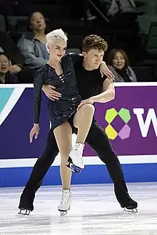 Manta previously competed in ice dance with Jonathan Thompson.[1] Manta has partnered with ice dancer Joseph Johnson since 2013.[1][2] The team is coached by Patti Gottwein in Colorado Springs.[1] Manta and Johnson received their first Grand Prix assignment in 2018, competing at Skate America.[3][4] They finished in 10th place with a total score of 139.33.[2][5]