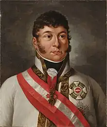 Karl Philipp, Fürst zu Schwarzenberg (or Charles Philip, Prince of Schwarzenberg; 18/19 April 1771 – 15 October 1820) was an Austrian Generalissimo and former Field Marshal.[1] He first entered military service in 1788 and fought against the Turks. During the French Revolutionary War, he fought on the allied side against France and in that period rose through the ranks of the Imperial Army. During the Napoleonic Wars, he fought in the Battle of Wagram (1809), which the Austrians lost decisively against Napoleon. He had to fight for Napoleon in the Battle of Gorodechno (1812) against the Russians and won. During the War of the Sixth Coalition, he was in command of the allied army that decisively defeated Napoleon in the Battle of Leipzig (1813). He participated in the Battle of Paris (1814), which forced Napoleon to abdicate.