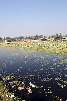 Coarse rice and haakh constituted the main food.[47] Where paddy cultivation was restricted due to uneven terrain and lack of irrigation facilities, maize constituted the main item of food.[47] In certain parts of Kashmir they lived on aquatic products such as singhara (water nuts).[47]