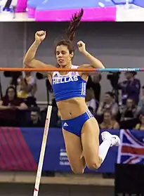 Katerina Stefanidi (Greek: Κατερίνα Στεφανίδη; born 4 February 1990[3]) is a Greek pole vaulter. She won the gold medal at the 2016 Rio Olympics and has also competed at the 2012 London and the 2020 Tokyo Olympics. Stefanidi was the 2017 World champion and earned bronze at the 2019 World Championships. At the European Athletics Championships, she won two gold medals (2016, 2018) and two silvers (2014, 2022). Indoors, she is a two-time World Indoor bronze medallist from 2016 and 2018, was the 2017 European Indoor champion and earned silver at the 2015 European Indoor Championships.