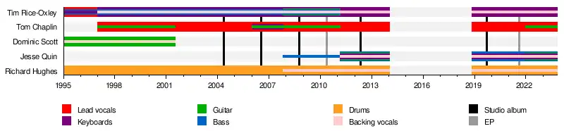 - Tim Rice-Oxley – keyboards (1995–2014, 2018–present), guitar (2008–2011), bass (1995–2011), backing vocals (1997–2014, 2018–present), lead vocals (1995–1997)